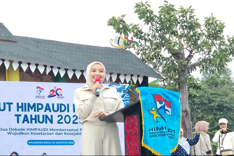 Palangka Raya — Himpunan Pendidik dan Tenaga Kependidikan Anak Usia Dini Indonesia (HIMPAUDI)merayakan HUT ke-20 dengan penuh semangat di Bundaran Besar Palangka Raya, Minggu (24/8/2025).