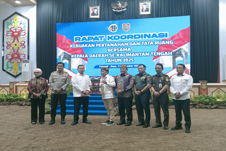 Palangka Raya - Dinas ATR/BPN Provinsi Kalimantan Tengah menggelar Rapat Koordinasi Kebijakan Pertanahan dan Tata Ruang bersama Kepala Daerah se-Kalimantan Tengah Tahun 2025. Kegiatan berlangsung di Aula Jayang Tingang, Kantor Gubernur Provinsi Kalteng, pada Kamis (11/12/2025).