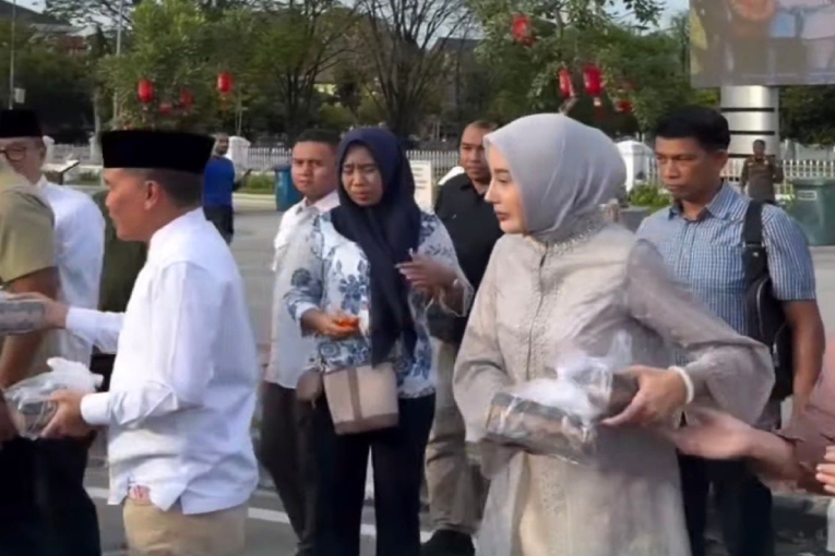 Ketua TP-PKK Kalteng, Aisyah Thisia Agustiar Sabran, bersama Gubernur turun langsung membagikan sebanyak 500 paket takjil kepada pengendara roda dua, roda empat, hingga pejalan kaki yang melintas di pusat kota.