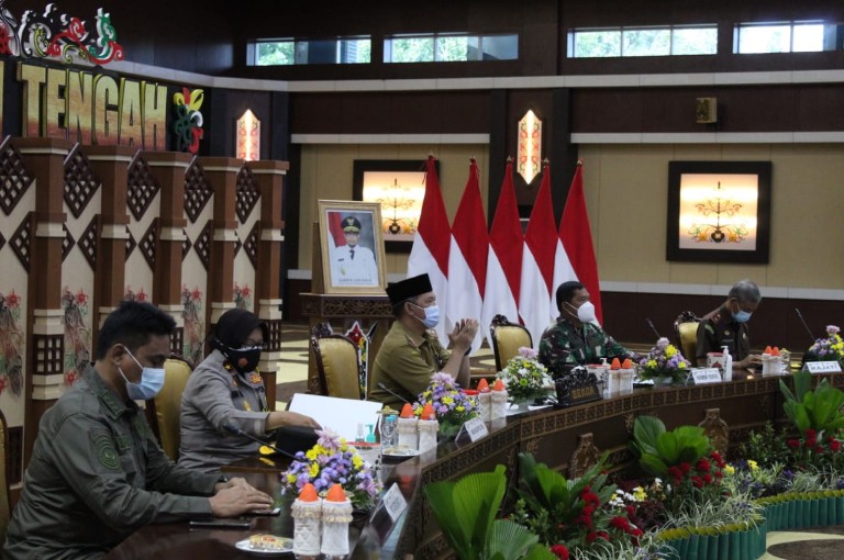 PALANGKA RAYA - Kapolda Kalteng Irjen Pol. Dr. Dedi Prasetyo, M.Hum., M.Si., M.M., melalui Wakapolda Brigjen Pol. Ida Oetari Poernamasasi, S.A.P., M.A., mengikuti Rapat Koordinasi (Rakor) di Aula Jayang Tingang Kantor Gubernur Kalteng Jalan RTA Milono Kota Palangka Raya, Senin (11/04/2021) siang. Ketika dikonfirmasi, Kapolda melalui Kabidhumas Kombes Pol K. Eko Saputro, S.H., M.H., mengatakan, jika dalam Rakor tersebut disampaikan bahwa pelaksanaan rangkaian ibadah baik itu puasa, Shalat Taraweh maupun pelaksanaan kegiatan keagamaan lainnya tetap mempedomani Protokol Kesehatan Covid-19. "Ini penting untuk dipedomani, mengingat tren pandemi Covid-19 sampai sekarang masih mengalami peningkatan. Tentu hal tersebut wajib hukumnya untuk diikuti guna mencegah terjadinya klaster baru selama bulan Ramadan ini berlangsung," katanya. Disamping itu, terang Eko, disampaikan bahwa pelaksanaan mudik sebelum dan sesudah Idul Fitri 1442 H pun dilarang. "Dan ini pun sudah menjadi ketetapan seluruh instansi terkait yang berdasar pada keputusan para menteri," urainya. Lebih lanjut, Eko menuturkan, apa yang telah disepakati tersebut harus diketahui dan dipedomani oleh seluruh lapisan masyarakat. "Bila tidak, sanksi berupa putar balik ketempat asap akan diterapkan," pungkasnya.