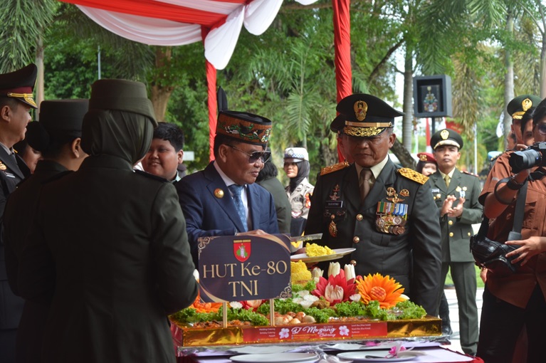 Palangka Raya - Dalam rangka memperingati Hari Ulang Tahun ke-80 Tentara Nasional Indonesia (TNI), Kodam XXII/Tambun Bungai melaksanakan upacara HUT TNI di halaman Kantor Gubernur Provinsi Kalimantan Tengah, Jl. RTA Milono, Kota Palangka Raya, Minggu (5/10/2025).