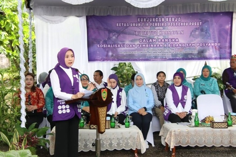 Palangka Raya – Ketua TP PKK Provinsi Kalimantan Tengah, Aisyah Thisia Agustiar Sabran, menyambut kunjungan Ketua Umum TP PKK, Tri Tito Karnavian, yang didampingi Pokja IV dan Tim Pembina Posyandu. Kunjungan ini meninjau berbagai pelayanan kesehatan, termasuk imunisasi dan pemberian vitamin untuk balita.