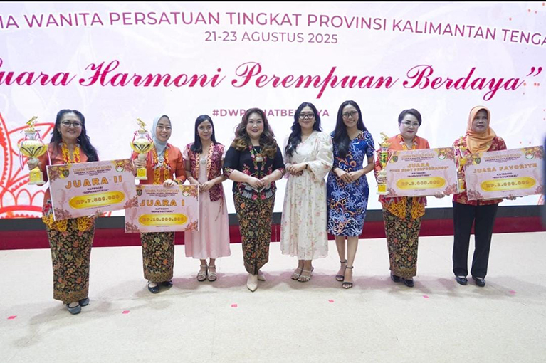 Palangka Raya — Ketua Dharma Wanita Persatuan (DWP) Kalteng, Natalin Leonard S. Ampung, menutup secara resmi Lomba Paduan Suara DWP Provinsi Kalimantan Tengah, Sabtu (23/8/2025), di Aula Jayang Tingang, Kantor Gubernur Kalteng.