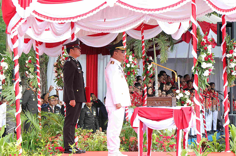 Palangka Raya — Upacara peringatan HUT ke-80 Kemerdekaan Republik Indonesia di Kalimantan Tengah berlangsung khidmat, Sabtu (17/8/2025), dan dihadiri unsur Forkopimda, Wakil Gubernur Edy Pratowo, Ketua DPRD Arton S. Dohong, Ketua TP-PKK Aisyah Thisia Agustiar Sabran, Plt. Sekda Leonard S. Ampung, para Asisten dan Staf Ahli Gubernur, Kepala OPD, tokoh agama, tokoh masyarakat, tokoh adat, para veteran, serta tamu undangan lainnya.